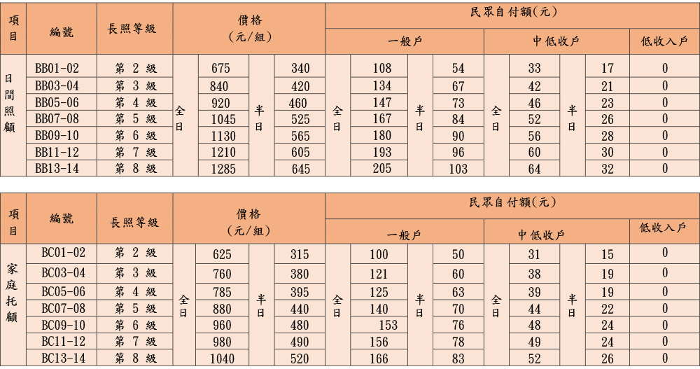 二、日間照顧(BB 碼)或家庭托顧(BC 碼)