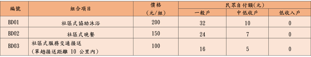 1.BD03 社區式服務交通接送僅限日照、家托、巷弄長照站、文化健康站、失智社區服務據點及輔具資源中心接駁使用。距離10公里內之往返。