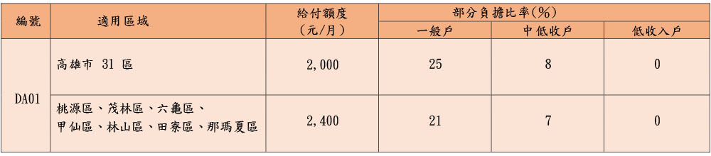 補助額度:一般戶補助 84%、中低收入戶補助 95%、低收入戶補助 100%。