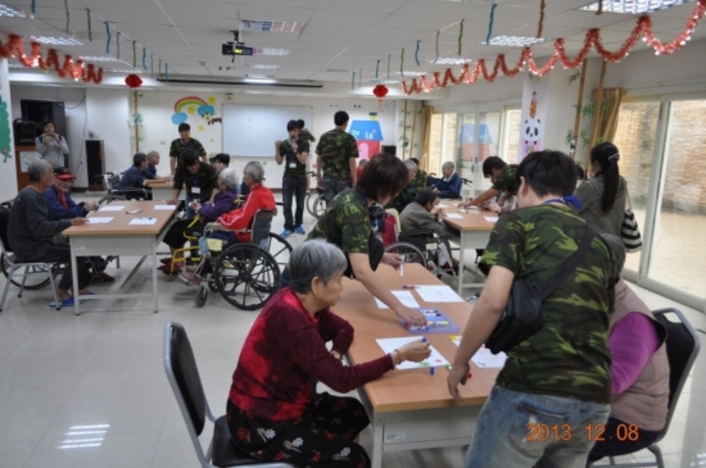 高雄市聖和老人長期照顧中心於102年12月09日(星期一)下午15時至下午17時歡迎遠東科技大學-課外活動指導組的社區休閒活動推廣社師生們蒞臨中心關懷長輩們,並辦理一百零二年度第一學期「社區服務活動-聖和老人長期照顧中心」,熱情邀請中心長輩們一同來參與活動,阿公阿嬤們皆笑的樂開懷。遠東科技大學-課外活動指導組安排的社區休閒活動活動主要宗旨精神落實社區活動推廣是以位於路竹區聖和老人長期照顧中心的長者為主,由學校老師帶領遠東科大的學生們走入本中心關懷每位長輩,並提供適合的活動,在深入關陪伴關懷的過程中,讓遠東科技大學的學生們體會到尊重與愛之真諦,開啟善心發揮生命之良能,以達到自我成長,並且培養學生能有效地運用所學於社會關懷中。