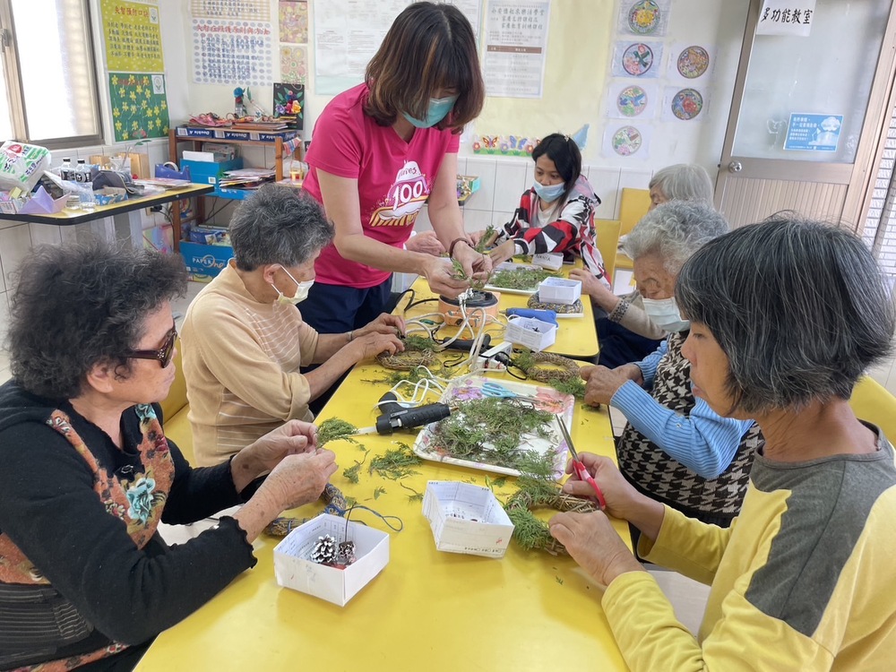 1. 認知促進、緩和失智服務:辦理知覺認知、音樂律動、肢體運動及園藝、農藝等課程,藉由課程與活動讓失智症患者延緩失智退化。
