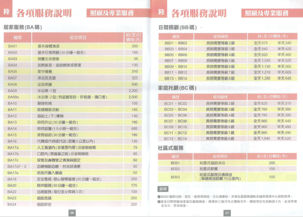 長期照顧服務-服務內容與收費標準說明